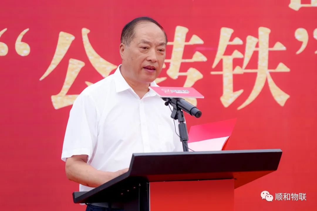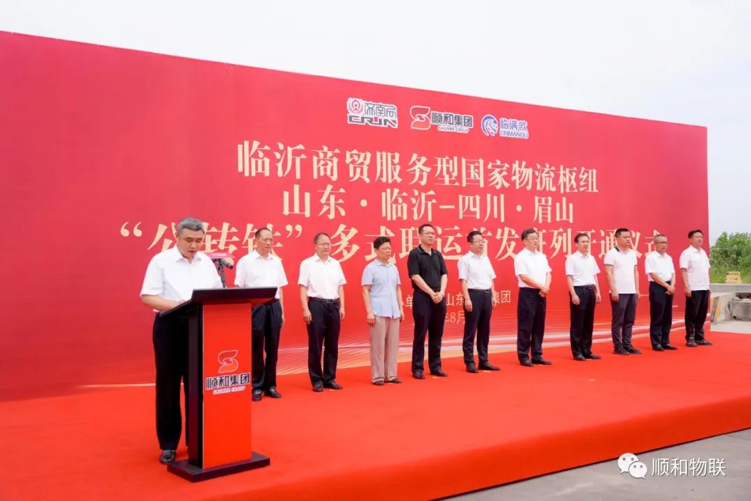 8月9日上午,由山東順和集團(tuán)主辦,山東順和物聯(lián)科技有限公司及事業(yè)合伙人山東臨滿歐國(guó)際物流有限公司、山東順和國(guó)際物流有限公司、臨沂濟(jì)鐵物流園協(xié)辦的“臨沂商貿(mào)服務(wù)型國(guó)家物流樞紐(山東·臨沂—四川·眉山)‘公轉(zhuǎn)鐵’多式聯(lián)運(yùn)首發(fā)班列開通儀式”順利舉行。中國(guó)鐵路濟(jì)南局集團(tuán)有限公司貨運(yùn)部主任劉洪青,臨沂市人大常委會(huì)副主任劉飛,臨沂商城黨工委書記、管委會(huì)主任王景美,臨沂市重點(diǎn)建設(shè)項(xiàng)目服務(wù)中心主任徐寶宏,臨沂市交通局道路運(yùn)輸服務(wù)中心黨委成員、副主任張樹峰,臨沂市鐵路民航事業(yè)發(fā)展中心黨組成員、副主任朱孔嚴(yán),臨沂車務(wù)段段長(zhǎng)張鈺國(guó),臨沂車務(wù)段副段長(zhǎng)劉玉方,蘭山區(qū)政府副區(qū)長(zhǎng)、商城黨組副書記、管委會(huì)副主任田宗春,濟(jì)南鐵路局濟(jì)鐵物流園總經(jīng)理陳偉,蘭山經(jīng)濟(jì)開發(fā)區(qū)管委會(huì)副主任鄭峰,蘭山區(qū)交通局局長(zhǎng)董建梅,蘭山區(qū)發(fā)改局副主任朱雪松,山東順和集團(tuán)黨委書記趙玉璽,山東臨滿歐國(guó)際物流有限公司總經(jīng)理咸友濤及順和集團(tuán)各企業(yè)、部門人員出席儀式,儀式由順和集團(tuán)董事長(zhǎng)許大勇主持。 順和集團(tuán)黨委書記趙玉璽在致辭時(shí)表示:順和集團(tuán)將繼續(xù)按照市委、市政府“商、倉(cāng)、流、園”一體化、“四個(gè)商城”建設(shè)的指導(dǎo)方針,以強(qiáng)烈的政治責(zé)任感和歷史使命感,大膽創(chuàng)新、奮力拼搏,積極搭建國(guó)家物流樞紐總平臺(tái)、總體系,加快推動(dòng)商貿(mào)物流轉(zhuǎn)型升級(jí)和公轉(zhuǎn)鐵多式聯(lián)運(yùn)、同線路聚合發(fā)展,打造標(biāo)桿示范高地,為臨沂商貿(mào)物流轉(zhuǎn)型向高質(zhì)量發(fā)展插上騰飛的翅膀貢獻(xiàn)順和力量!