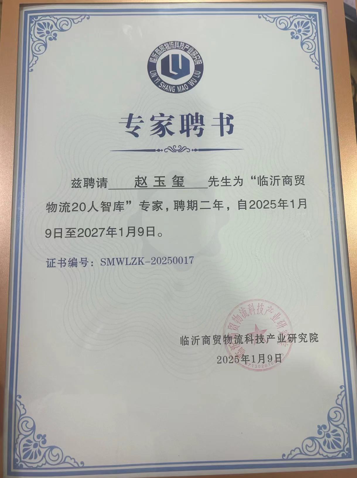 會(huì)上,集團(tuán)黨委書(shū)記趙玉璽、商貿(mào)物流研究院順和分院院長(zhǎng)曹松榮被聘請(qǐng)為“臨沂商貿(mào)物流20人智庫(kù)”專(zhuān)家,聘期二年。