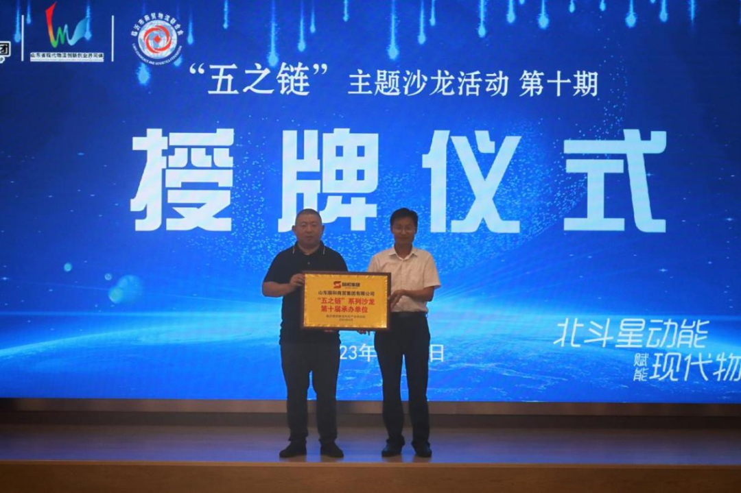 2023年8月25日下午,由臨沂市商貿物流科技產業(yè)研究院主辦,山東順和商貿集團有限公司、臨沂市商貿物流聯(lián)合會承辦的《第十期“五之鏈”物流主題沙龍——應用示范北斗星動能 數字賦能現代物流城》活動在臨沂商貿服務型國家物流樞紐山東順和國際智慧物流園成功舉行。新疆巴州恒立供銷合作社副主任、二級調研員劉成軍,蘭山商城管委會國際陸港建設服務中心主任杜慶明,臨沂商城管委會規(guī)劃服務科科長彭飛,臨沂商貿物流科技產業(yè)研究院院長張家瑋,集團黨委副書記、董事長許大勇,集團董事、副總經理李邦,新疆絲路九鼎梨城農產品經營管理公司董事長買買提江.吐爾地,山東連勝體育產業(yè)有限公司董事長宋連勝,臨沂商貿物流科技產業(yè)研究院副院長高元磊等企業(yè)和臨沂市商貿物流聯(lián)合會代表參與了此次沙龍活動。