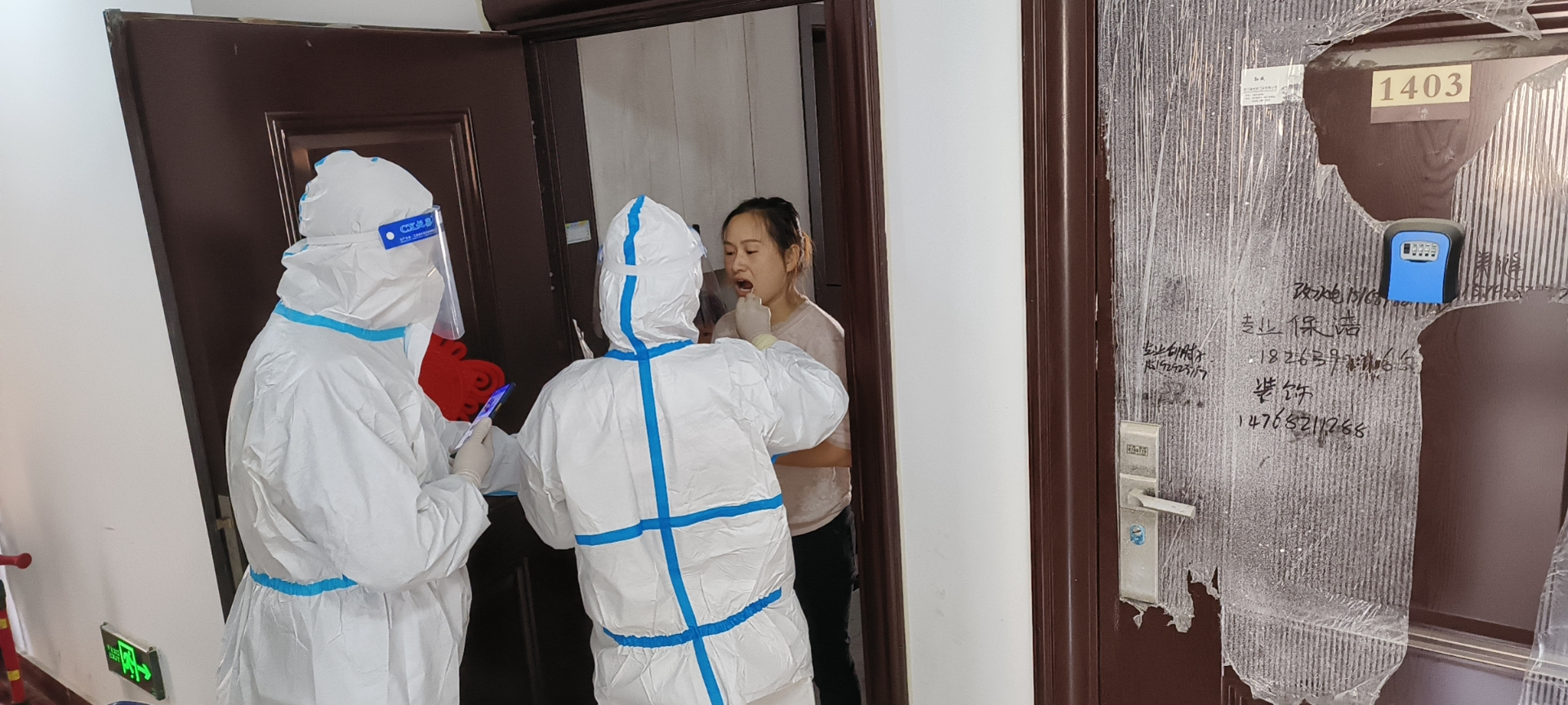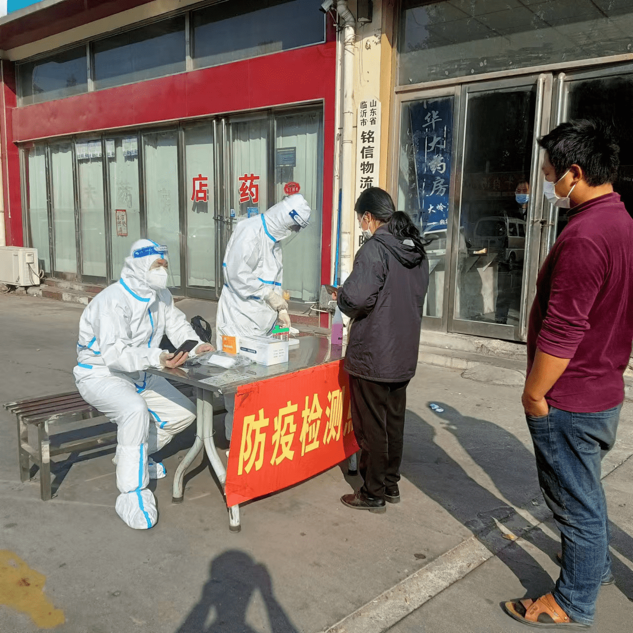 李莊社區(qū)工作人員協(xié)助醫(yī)護人員為居民做核酸檢測