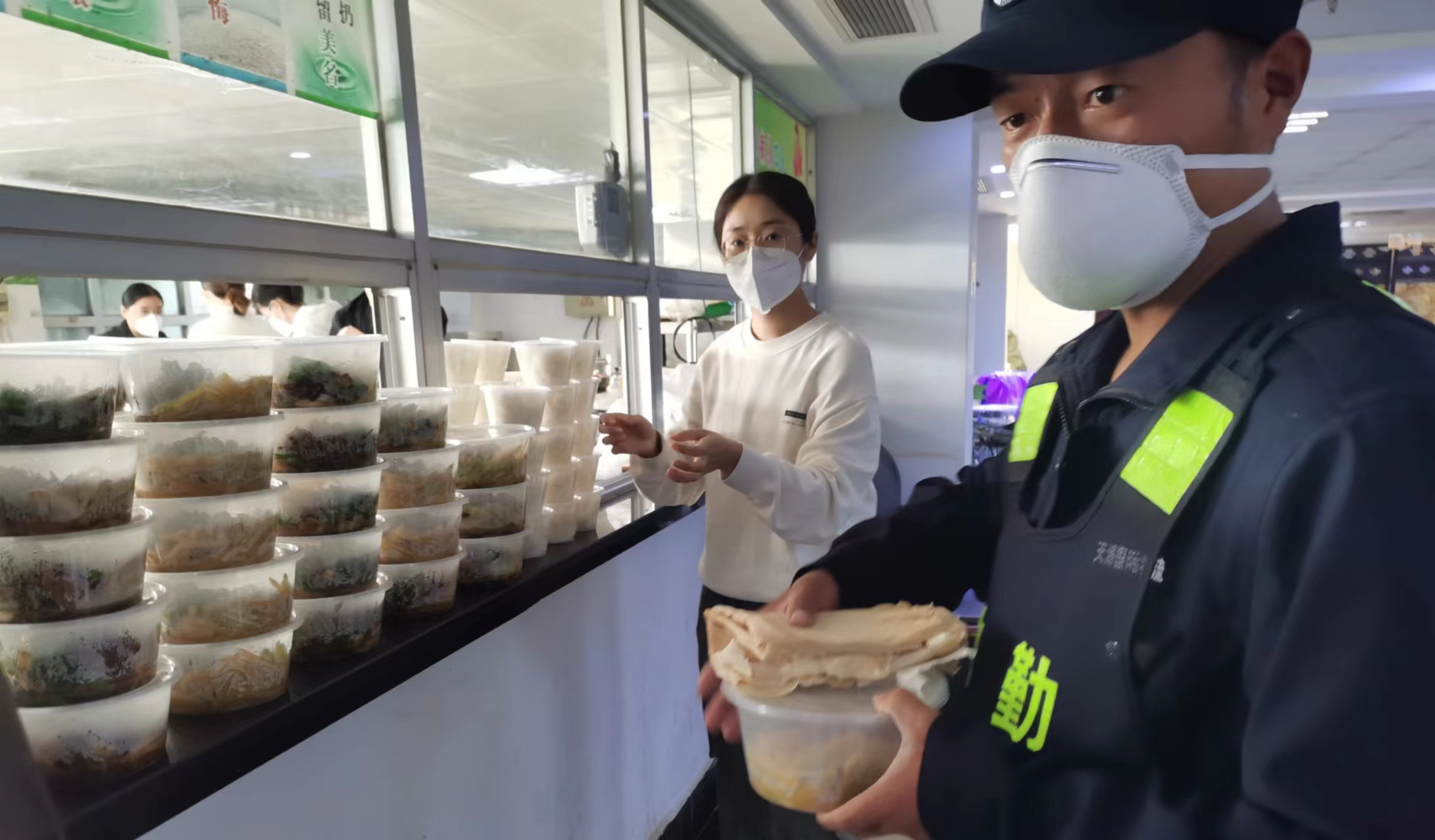 一份份打包好的餐盒,里面裝滿了熱氣騰騰的飯菜。順和集團5樓食堂里,幾名工作人員正在緊張有序的忙碌著,為了園區(qū)防疫工作人員能吃上熱乎的飯菜,集團黨政辦公室工作人員劉躍龍已經(jīng)駐守單位近1周了,每天在食堂里忙碌不停。最開始聽說園區(qū)要封控的時候,他所住的小區(qū)并沒有封控,接到單位通知后,他第一時間奔赴崗位,每天負責近100人的疫情防控工作人員的后勤保障,從不叫苦叫累。