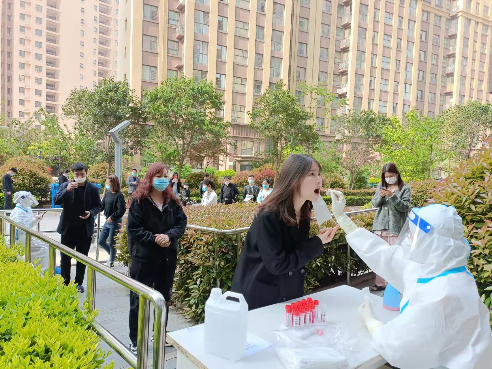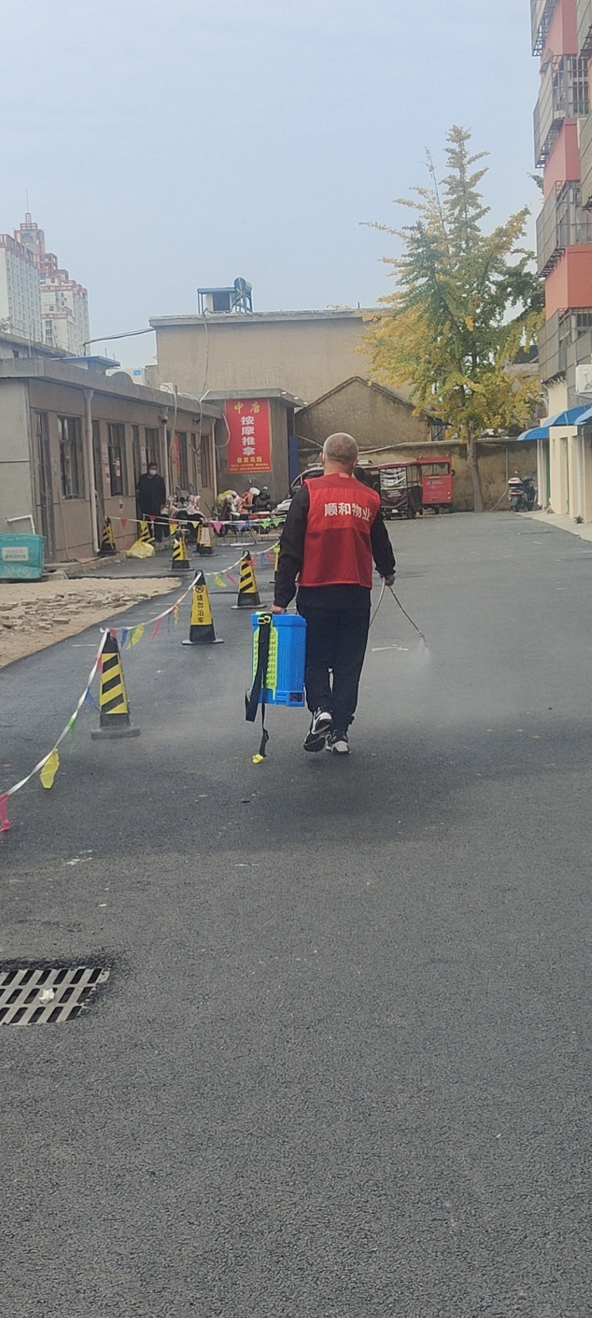 順和國際園區(qū)進行日常消殺,組織留守人員日常核酸檢測