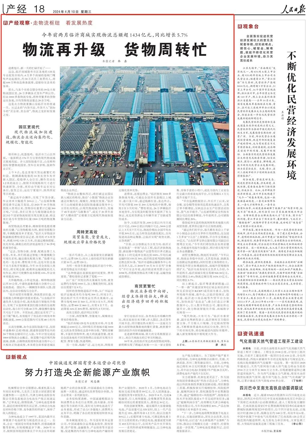穿行在臨沂市區(qū),各類商品市場鱗次櫛比,南北客商往來不斷;步入園區(qū),各式貨車川流不息,項目建設(shè)熱火朝天……這座北方最大商貿(mào)物流集散地的繁忙景象,映照著中國經(jīng)濟回升向好的融融暖意。