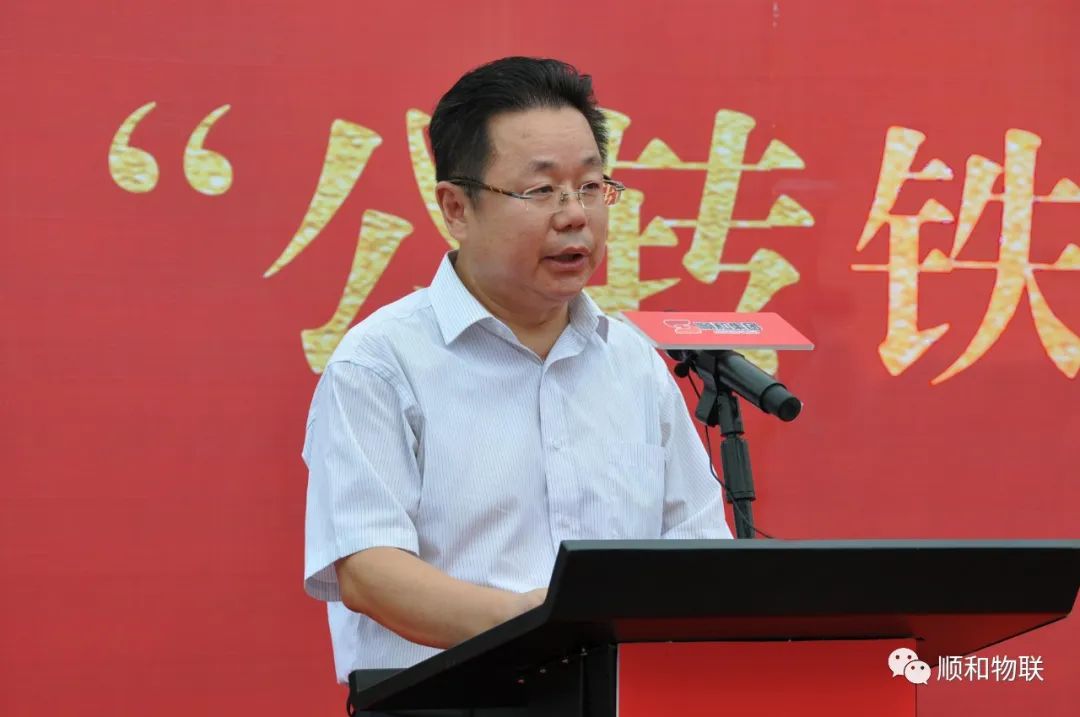 8月9日上午,由山東順和集團(tuán)主辦,山東順和物聯(lián)科技有限公司及事業(yè)合伙人山東臨滿歐國(guó)際物流有限公司、山東順和國(guó)際物流有限公司、臨沂濟(jì)鐵物流園協(xié)辦的“臨沂商貿(mào)服務(wù)型國(guó)家物流樞紐(山東·臨沂—四川·眉山)‘公轉(zhuǎn)鐵’多式聯(lián)運(yùn)首發(fā)班列開通儀式”順利舉行。中國(guó)鐵路濟(jì)南局集團(tuán)有限公司貨運(yùn)部主任劉洪青,臨沂市人大常委會(huì)副主任劉飛,臨沂商城黨工委書記、管委會(huì)主任王景美,臨沂市重點(diǎn)建設(shè)項(xiàng)目服務(wù)中心主任徐寶宏,臨沂市交通局道路運(yùn)輸服務(wù)中心黨委成員、副主任張樹峰,臨沂市鐵路民航事業(yè)發(fā)展中心黨組成員、副主任朱孔嚴(yán),臨沂車務(wù)段段長(zhǎng)張鈺國(guó),臨沂車務(wù)段副段長(zhǎng)劉玉方,蘭山區(qū)政府副區(qū)長(zhǎng)、商城黨組副書記、管委會(huì)副主任田宗春,濟(jì)南鐵路局濟(jì)鐵物流園總經(jīng)理陳偉,蘭山經(jīng)濟(jì)開發(fā)區(qū)管委會(huì)副主任鄭峰,蘭山區(qū)交通局局長(zhǎng)董建梅,蘭山區(qū)發(fā)改局副主任朱雪松,山東順和集團(tuán)黨委書記趙玉璽,山東臨滿歐國(guó)際物流有限公司總經(jīng)理咸友濤及順和集團(tuán)各企業(yè)、部門人員出席儀式,儀式由順和集團(tuán)董事長(zhǎng)許大勇主持。 順和集團(tuán)黨委書記趙玉璽在致辭時(shí)表示:順和集團(tuán)將繼續(xù)按照市委、市政府“商、倉(cāng)、流、園”一體化、“四個(gè)商城”建設(shè)的指導(dǎo)方針,以強(qiáng)烈的政治責(zé)任感和歷史使命感,大膽創(chuàng)新、奮力拼搏,積極搭建國(guó)家物流樞紐總平臺(tái)、總體系,加快推動(dòng)商貿(mào)物流轉(zhuǎn)型升級(jí)和公轉(zhuǎn)鐵多式聯(lián)運(yùn)、同線路聚合發(fā)展,打造標(biāo)桿示范高地,為臨沂商貿(mào)物流轉(zhuǎn)型向高質(zhì)量發(fā)展插上騰飛的翅膀貢獻(xiàn)順和力量!