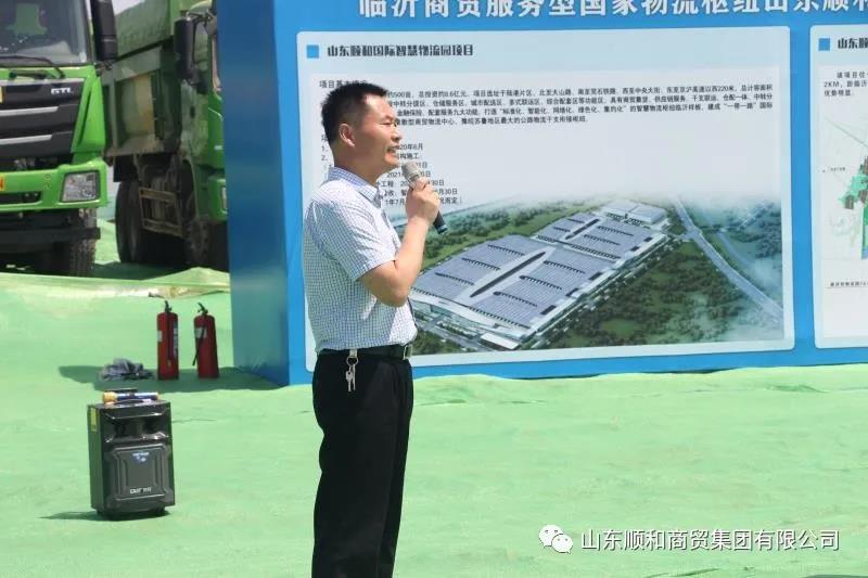 上午10點18分,動工儀式正式開始,山東順和集團黨委書記、董事長趙玉璽致辭,趙書記對蒞臨動工儀式的領(lǐng)導(dǎo)與嘉賓表示熱烈歡迎。趙書記講到,5月16日,山東省隆重舉行全省16個市的769個重大項目集中開工活動,國家物流樞紐順和國際物流園項目作為臨沂分會場的省重大項目,是各級領(lǐng)導(dǎo)對國家物流樞紐順和國際智慧物流園項目的高度重視和充分肯定。順和國際智慧物流園項目動工儀式,標志著項目正式進入了實質(zhì)性建設(shè)階段。趙書記表示,項目將建設(shè)成領(lǐng)導(dǎo)放心、專線公司滿意的亮點工程,建設(shè)成臨沂商貿(mào)物流轉(zhuǎn)型升級的樣板工程,建設(shè)成國家物流樞紐建設(shè)的示范工程。順和集團有信心通過建設(shè)運營臨沂樞紐,打造千億級現(xiàn)代物流集團,將臨沂樞紐打造成為點發(fā)全國,服務(wù)全球的智慧物流樞紐新標桿!