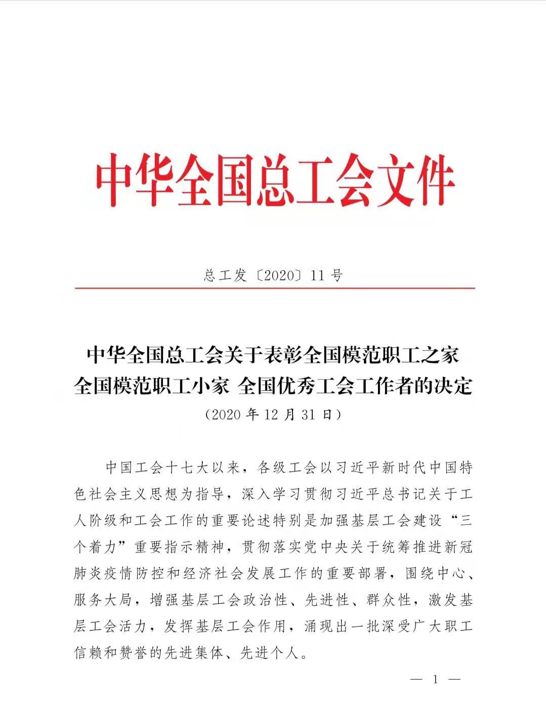 2020年12月31日,臨沂天源國際物流有限公司工會(huì)委員會(huì)被全國總工會(huì)授予“全國模范職工之家”榮譽(yù)稱號。建設(shè)深受職工信賴的職工之家,當(dāng)好職工信賴的娘家人,是工會(huì)工作的永恒課題。天源工會(huì)委員會(huì)將繼續(xù)發(fā)揮示范帶頭作用,牢記黨的全心全意依靠工人階級的方針,堅(jiān)定不移走中國特色社會(huì)主義工會(huì)發(fā)展道路, 強(qiáng)基層、補(bǔ)短板、增活力,切實(shí)維護(hù)職工合法權(quán)益、竭誠服務(wù)職工群眾,努力構(gòu)建和諧勞動(dòng)關(guān)系。