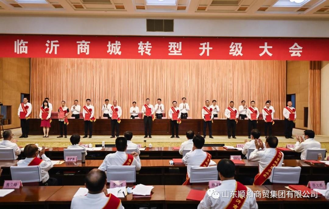 5月20日上午,臨沂商城轉(zhuǎn)型升級(jí)大會(huì)隆重召開,市委書記任剛出席會(huì)議并講話,市委副書記、市長(zhǎng)侯曉濱主持會(huì)議,市人大常委會(huì)主任崔鳳友,市委副書記、宣傳部部長(zhǎng)張寶亮等出席會(huì)議。 大會(huì)現(xiàn)場(chǎng),集團(tuán)黨委書記趙玉璽被授予“臨沂商城功勛企業(yè)家”榮譽(yù)稱號(hào);集團(tuán)黨委副書記、董事長(zhǎng)許大勇被授予“臨沂商城杰出企業(yè)家”榮譽(yù)稱號(hào)。頒獎(jiǎng)儀式結(jié)束后,集團(tuán)黨委書記趙玉璽作為企業(yè)代表上臺(tái)發(fā)言分享,向與會(huì)人員介紹了順和集團(tuán)在現(xiàn)代物流和直播電商方面做出的工作與下一步發(fā)展計(jì)劃,受到與會(huì)人員的高度肯定。