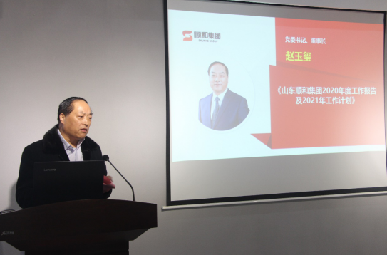 隨后集團黨委書記、董事長趙玉璽做了重要講話,董事長在講話中首先回顧了2020年集團取得的成績:集團各下屬企業(yè)2020年的經(jīng)濟收入情況;“順勢起航 和聚未來”國家物流樞紐建設暨臨沂物流轉型升級沙龍大會圓滿召開;“創(chuàng)新物流樞紐建設 助力打造東方商都”國家物流樞紐承載城市建設研討會暨臨沂商貿物流轉型發(fā)展高峰論壇圓滿舉行;中宣部“走向我們的小康生活”主題采訪團走進順和集團;社區(qū)二期舊居改造項目工作的圓滿完成;山東省重點項目國家物流樞紐順和國際智慧物流園項目順利開工;與中科院空天院開展北斗科技應用系統(tǒng)工程。隨后,集團董事長趙玉璽表示,2021年是集團緊跟時代潮流,積極創(chuàng)新轉變,促進產(chǎn)業(yè)升級,實現(xiàn)高質量發(fā)展的關鍵,一定要堅持把集團經(jīng)濟收入、項目投資計劃、重點項目工作、黨建組織建設、公司管理工作、安全工作、社區(qū)工作共七大板塊做好做強。