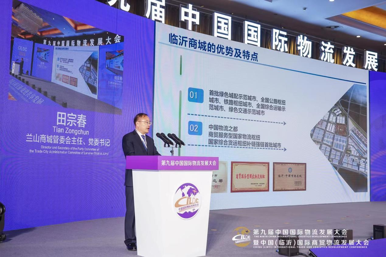 會(huì)上蘭山商城管委會(huì)主任、黨委書記田宗春作了臨沂市現(xiàn)代物流城產(chǎn)業(yè)規(guī)劃發(fā)布暨招商推介。