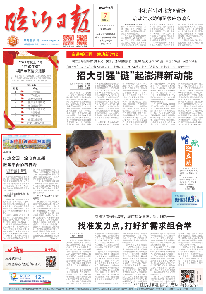 2018年,直播行業(yè)風(fēng)起云涌,當(dāng)時(shí)順和家居負(fù)責(zé)人、“90后”青年趙國強(qiáng)靠著敏銳的眼光意識(shí)到,臨沂是著名的物流之都、商貿(mào)名城,擁有獨(dú)特的地理和物流優(yōu)勢,為電商直播的發(fā)展提供了貨源、物流等必備條件,應(yīng)發(fā)揮優(yōu)勢抓住新業(yè)態(tài)發(fā)展紅利。