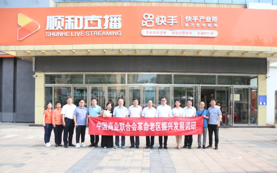 7月24日下午,中國商業(yè)聯(lián)合會調(diào)研組蒞臨順和直播參觀調(diào)研。中國商業(yè)聯(lián)合會一直致力于促進(jìn)革命老區(qū)的振興發(fā)展,為此,組織了一次專題調(diào)研工作,其中包括了對順和直播電子商務(wù)產(chǎn)業(yè)園的參觀指導(dǎo)工作。中國商業(yè)聯(lián)合會黨委常委、副會長傅龍成,中國商業(yè)聯(lián)合會特邀副會長、康養(yǎng)產(chǎn)業(yè)分會長、廣西怡園投資集團(tuán)有限公司董事長蔡志清,中國商業(yè)聯(lián)合會副秘書長、會展部部長、采購商分會會長李寶,中國商業(yè)聯(lián)合會會展部處長王棟,中國商聯(lián)商品交易市場專業(yè)委員會主任駱漢平,中國商聯(lián)易貨貿(mào)易分會會長李興遠(yuǎn)等領(lǐng)導(dǎo)參加本次活動。山東順和集團(tuán)黨委書記趙玉璽全程陪同調(diào)研。